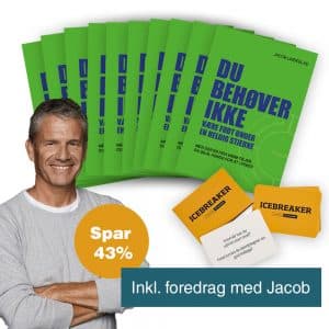 Jacob Lindeblad har formuleret 50 spørgsmålskort med 2 spørgsmål på hver. Alle spørgsmål handler om teamet, afdelingen, jer. Det spørgsmål du stiller, bestemmer det svar du får. Vi har afprøvet Korte Møder gennem rigtig mange år, og hver gang med et godt resultat.