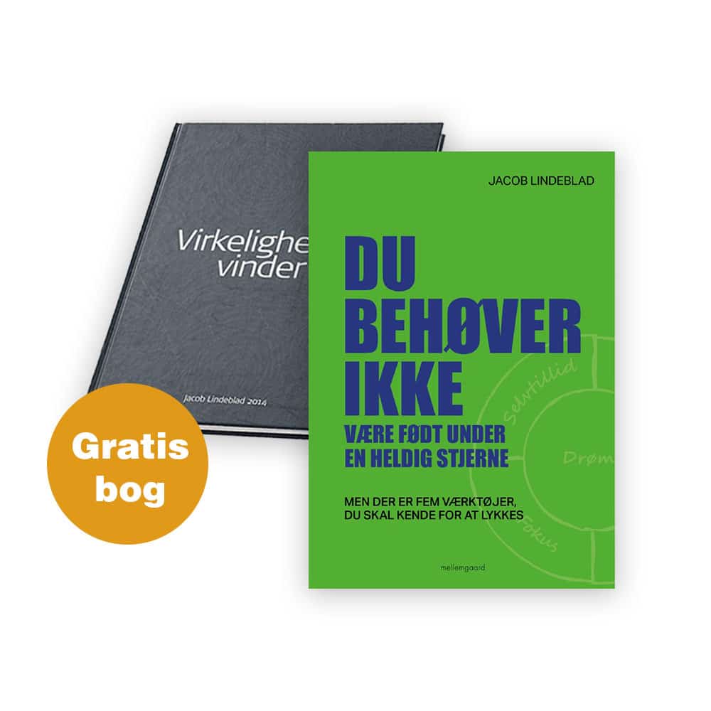 …og så smider vi Jacob´s første bog Virkeligheden vinder, med i pakken (gratis). Det er en bog om ledelse og selvledelse, og formålet var dels at skrive en bog i et lavt lixtal, for vi skal ikke gøre (selv-)ledelse sværere end det er, og dels at lave en lækker bog som har et coffee-table-book udseende.